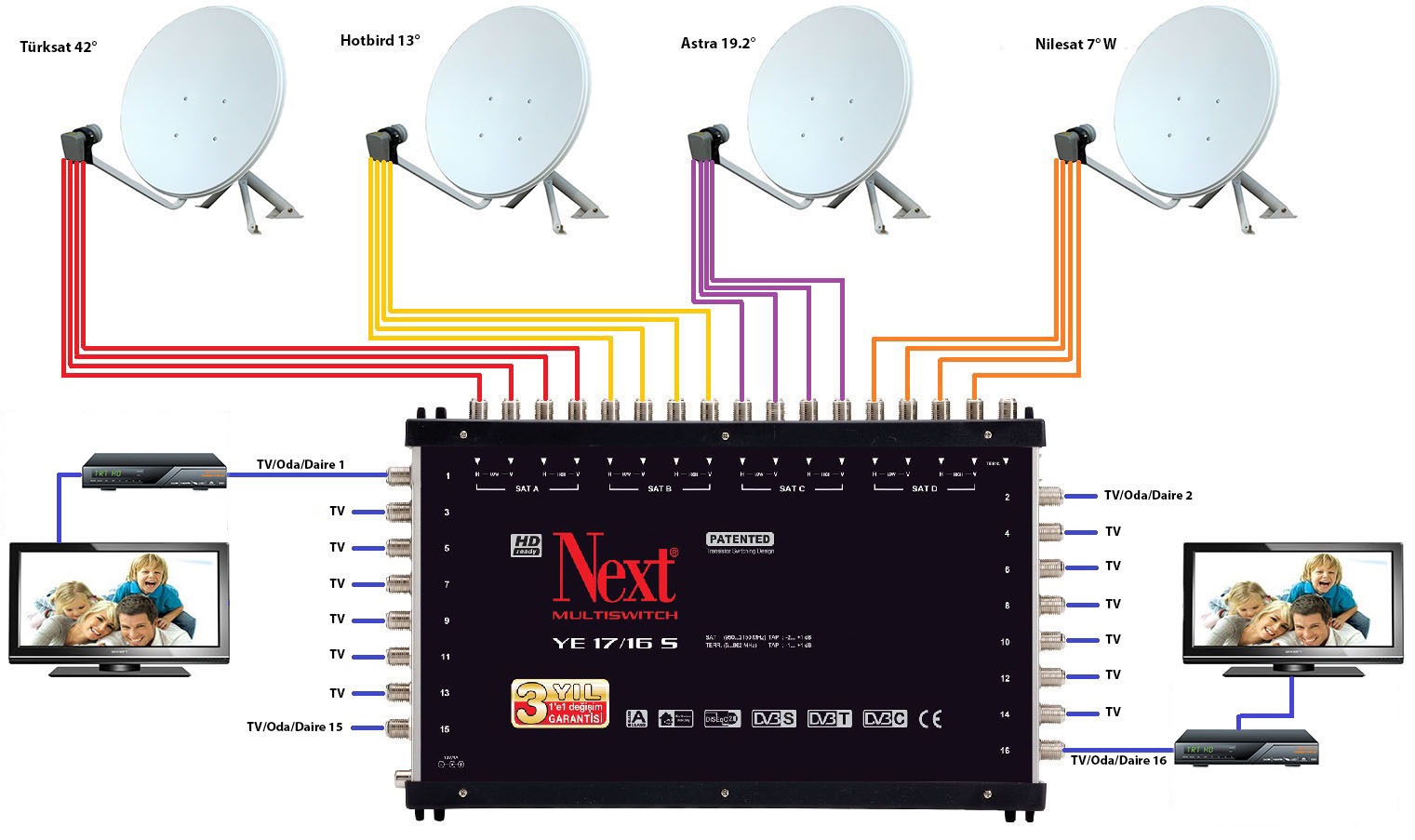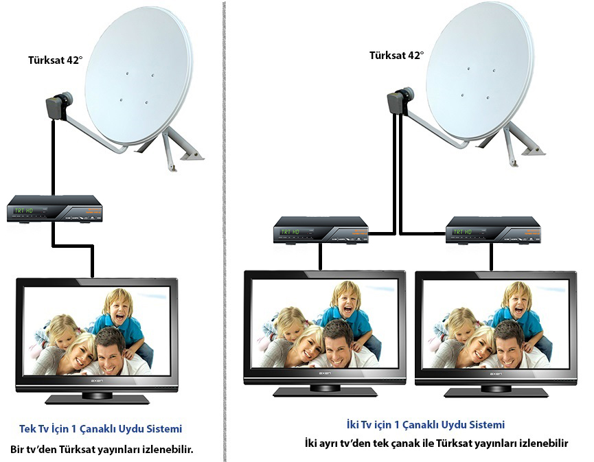 Merkezi veya bireysel uydu antenleri ve uydu alıcıları ile yerli ve yabancı binlerce kanalı evinize getiriyoruz.